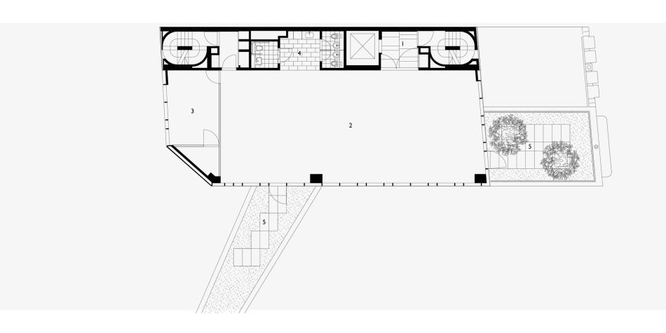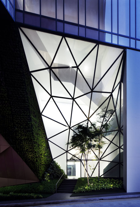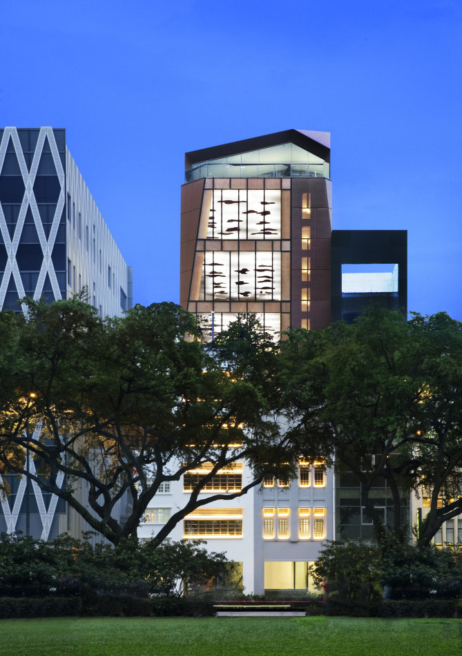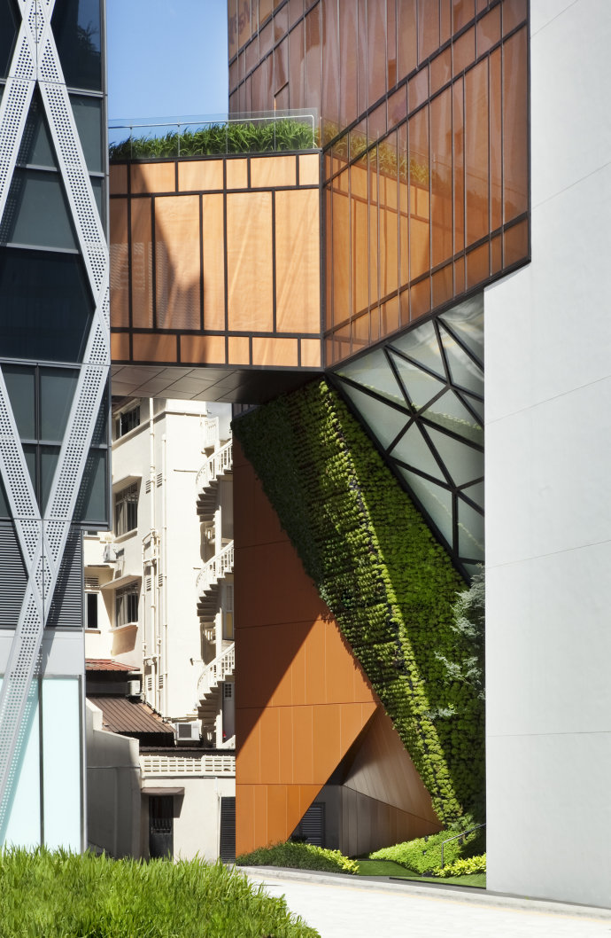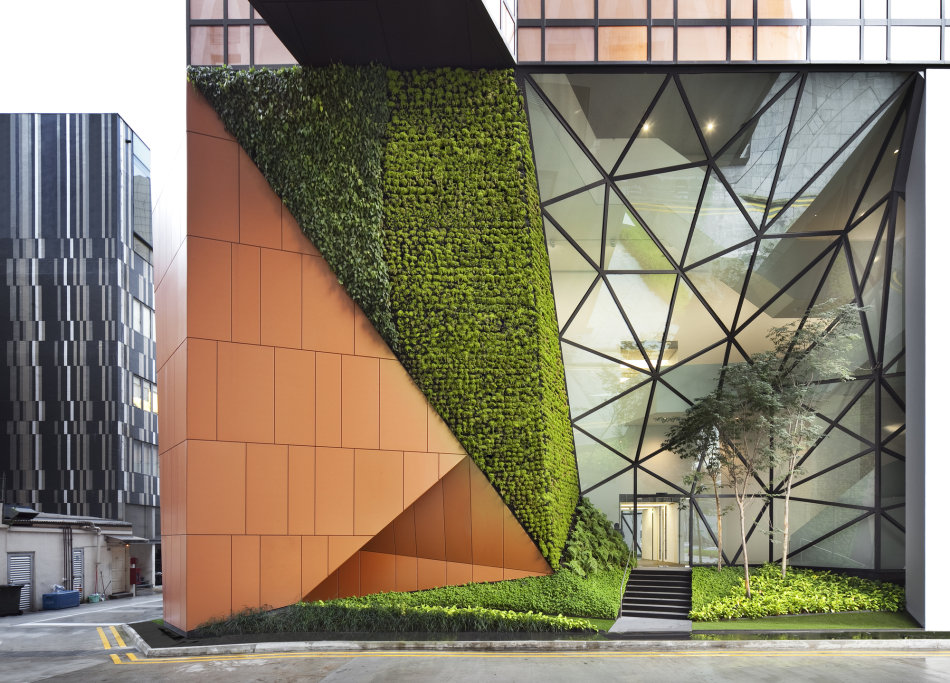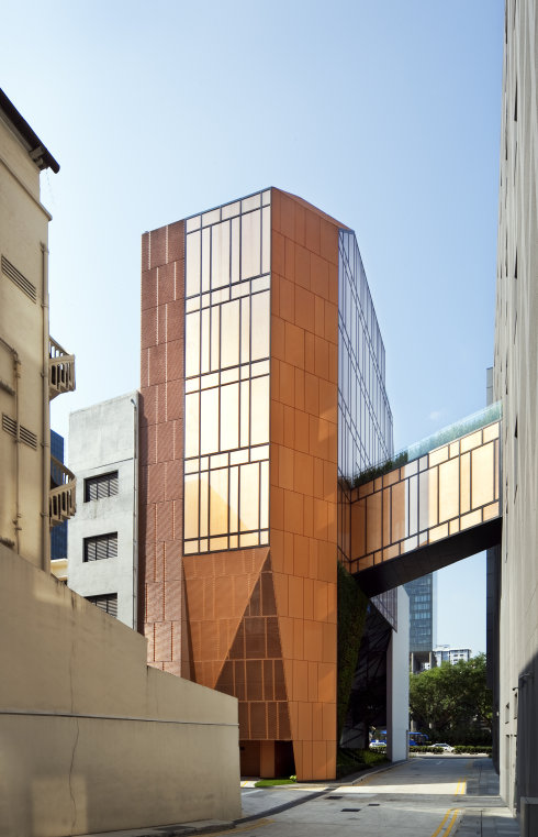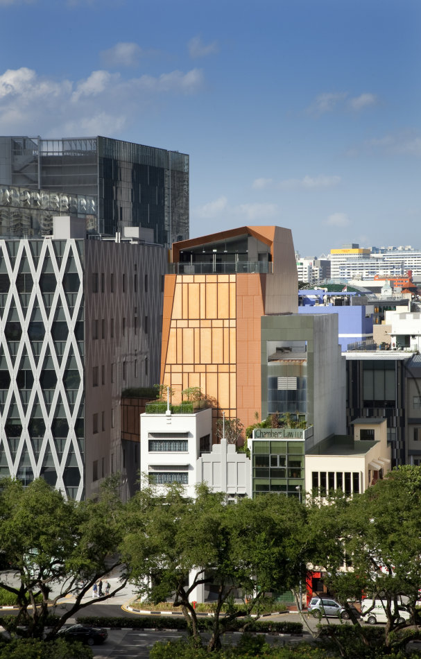 The project brief called for a new boutique office and the reconstruction of a pair of heritage-listed shophouses. WOHA was commissioned only after their demolition to reconstruct the shopfront (up to 7.5m depth) in accordance with Singapore’s Urban Redevelopment Authority’s conservation and planning guidelines, and to design an entirely new, contemporary rear wing.