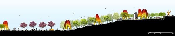公園的主要設計點(diǎn)是建造一個(gè)具有獨特標志的示范園區和城市公共空間,促進(jìn)未來(lái)經(jīng)濟的發(fā)展。公園應能將目光從上部主干道和楓溪路入口吸引到萬(wàn)科發(fā)展銷(xiāo)售中心;同時(shí)還能根據周邊未來(lái)發(fā)展的需要進(jìn)行改造和整合。