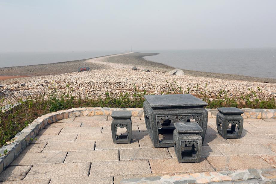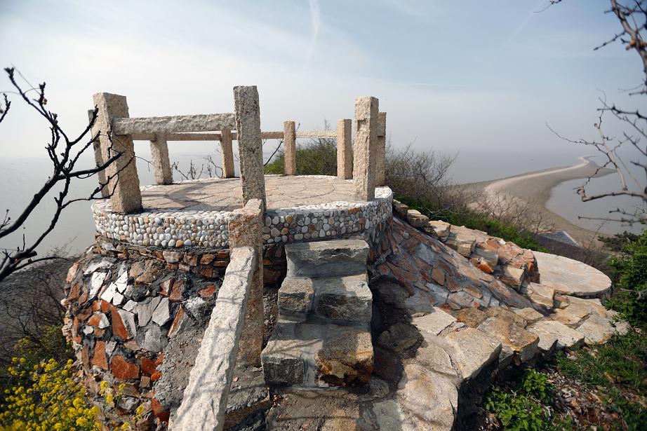 此景原為神路廣場(chǎng)頂部軍事眺臺,設計在其頂部設置石頭欄桿,供游客登高眺望。晴朗之日可觀(guān)贛榆區新城。